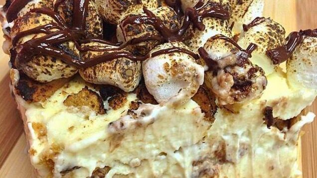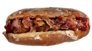 Yellow buttermilk cake topped with maple syrup buttercream frosting, a spicy salted caramel with cayenne, black pepper, sage, topped with chicken nuggets and a belgian waffle.»10/17/14 11:52am10/17/14 11:52am