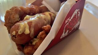 A deep-fried pocket of taco meat, covered in crushed Doritos, then slathered with nacho cheese and sour cream on-a-stick.»4/04/15 10:16am4/04/15 10:16am